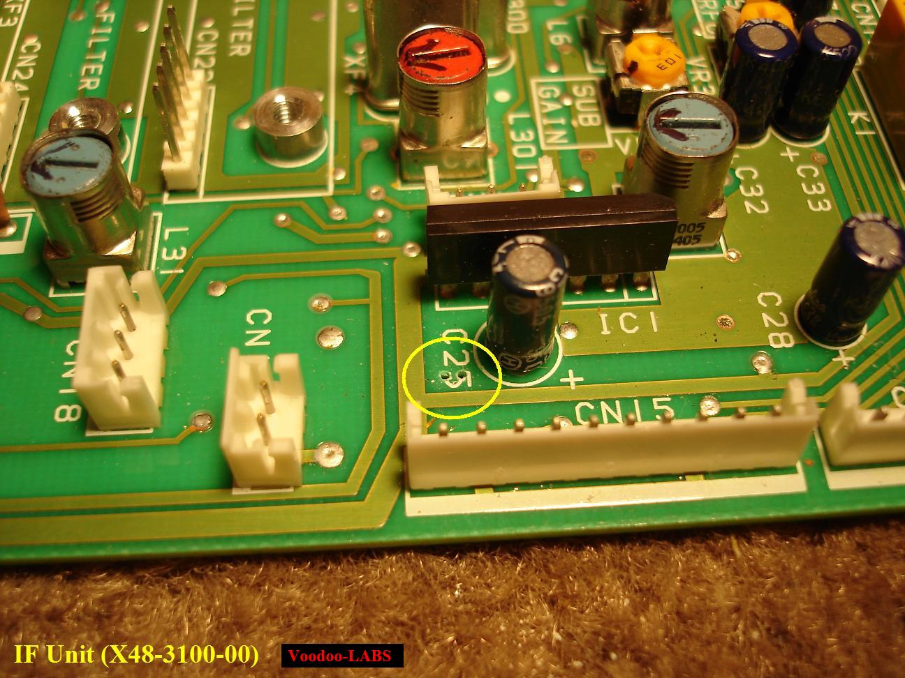 Here is a Pic of the bottom of the IF Unit. The Caps to be changed are marked in yellow.