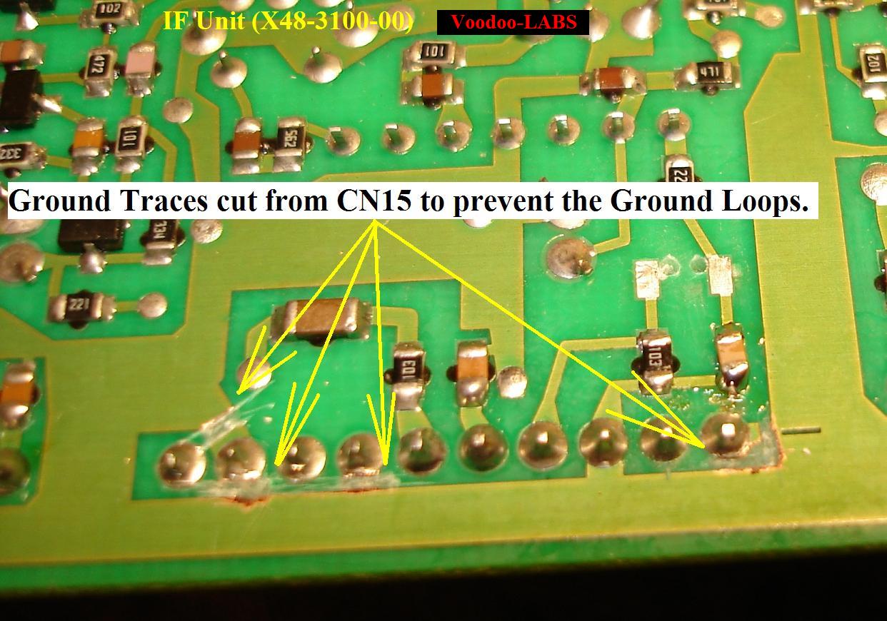 The fix for the IF Unit is to isolate 3ea Ground Traces from CN15 as shown in the picture below.